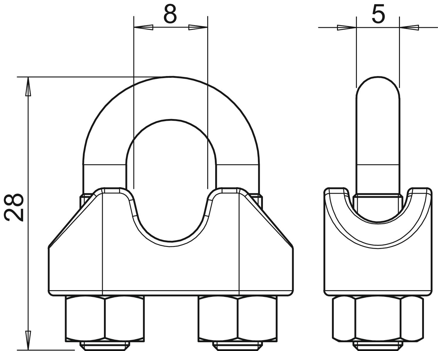 Descrierea produsuluiClemă pentru şufă pentru fixarea cablurilor de tracţiune din sârmă de oţel.