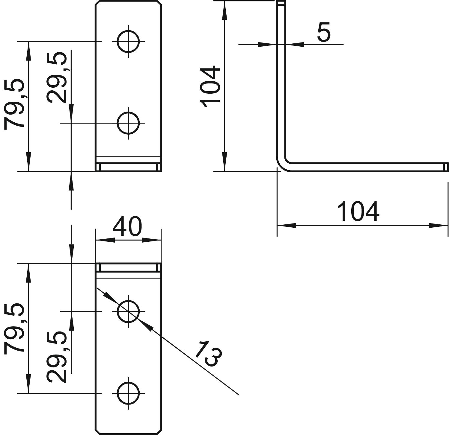 Descrierea produsuluiCornierul de montaj cu 4 perforaţii pentru conectarea şinelor profilate 41 x 41 mm şi 41 x 21 mm în cornierul de 90°.