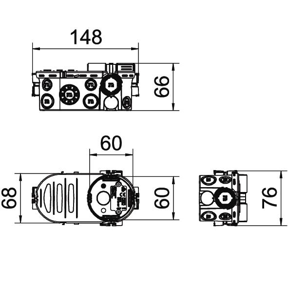 Descrierea produsuluiDoză electronică sub tencuială cu spațiu de prindere lateral, de formă unghiulară, pentru utilizare în zidărie cu o adâncime de instalare de cel puțin 66 mm.