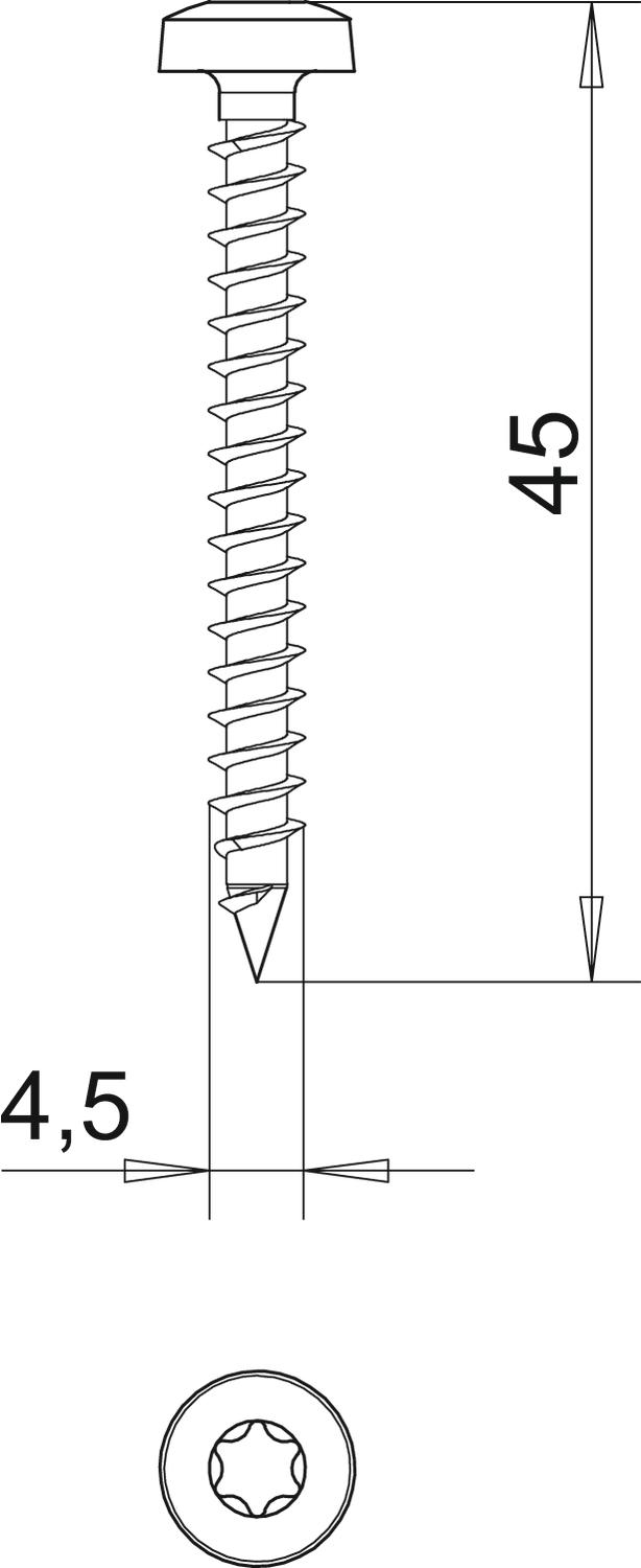 călit da Diametrul flanşei 8,2 mm Dimensiune 4,5x45mm Dimensiune D 4,5 mm Dimensiune L 45 mm Două compartimente da Forma flanşei Panhead Lungime 45 mm Material Oţel Putere ? Sarcina 4,5 mm Sistem de înșurubare Torx Suprafaţă zincat galvanic - Toate tipurile