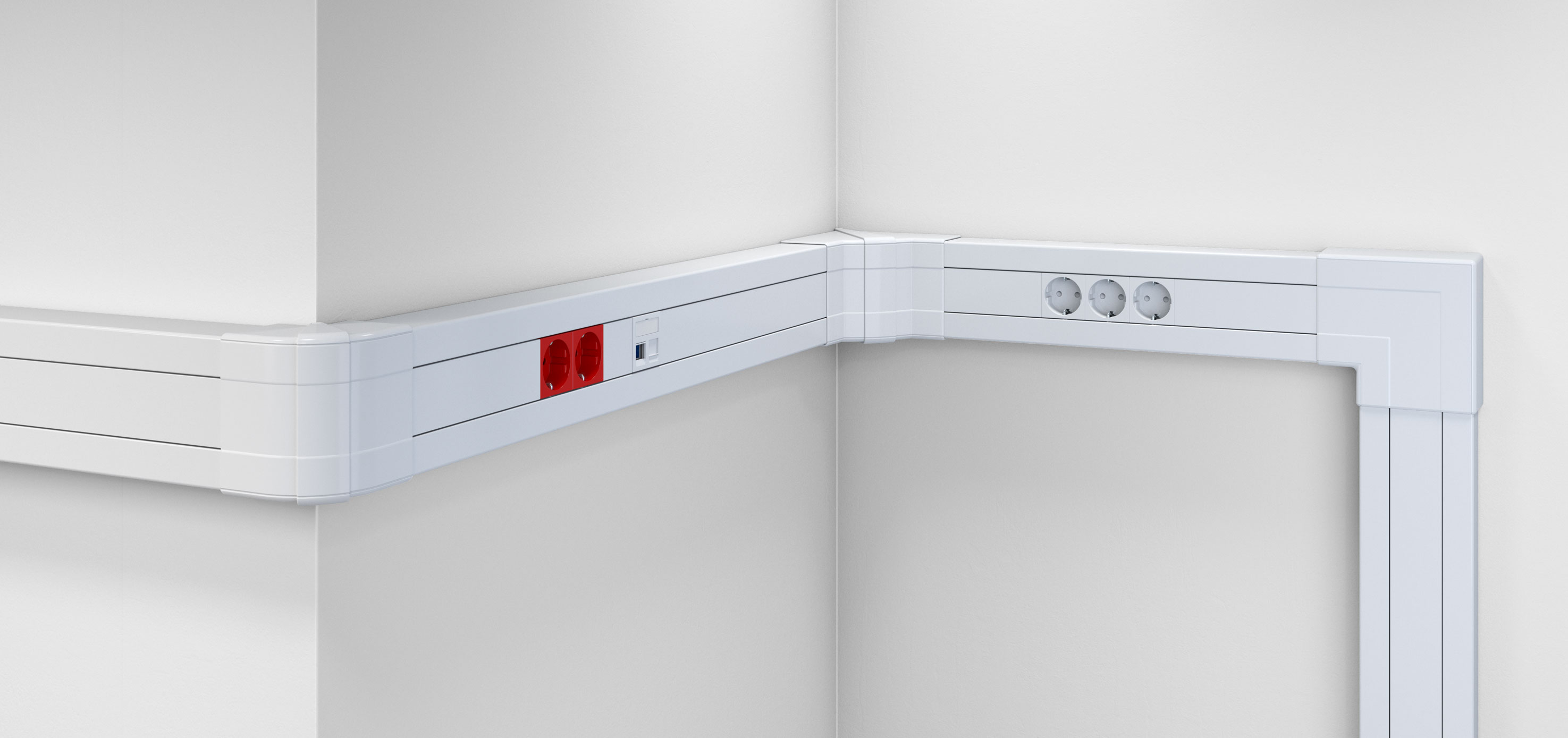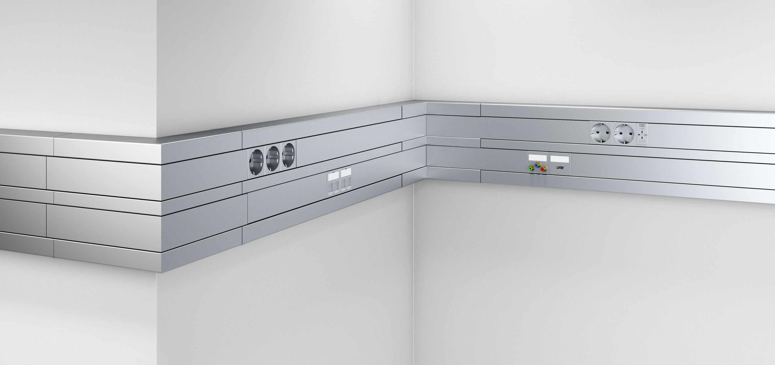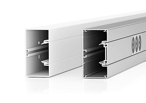 Cu piesele sale de formă inovatoare, acesta permite peste tot o instalare practică pe perete – fie în birouri și zone administrative, fie în industrie. Canalul tip pervaz combină aici simetria, omogenitatea culorii și flexibilitatea tehnică într-un singur sistem.