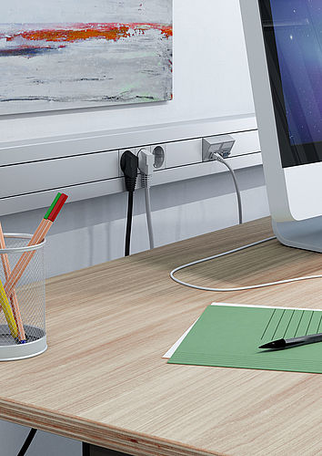 Canalul tip pervaz Rapid 45-2 din material plastic este la fel de estetic pe cât este de funcțional și reprezintă o soluție convingătoare în orice mediu de birou. Canalul din material plastic este disponibil în culorile negru, gri deschis și alb pur. Cu un total de trei lățimi ale canalului, canalele oferă acum și mai multe posibilități de utilizare.