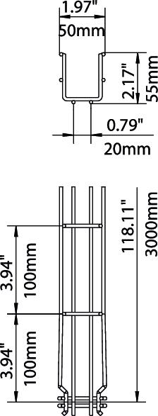 Descrierea produsuluiJgheab din sârmă cu piesă de legătură profilată, cu înălţimea de 55 mm.