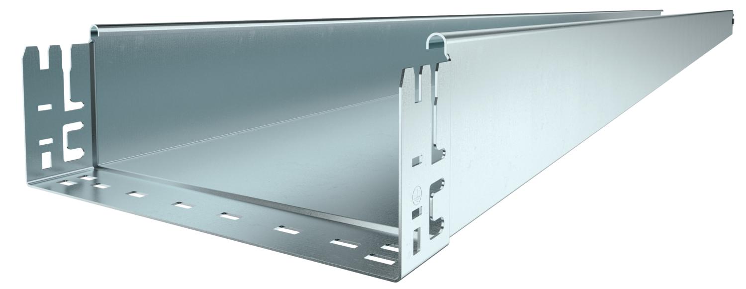 Jgheab pentru cabluri neporforat cu sistem de îmbinare rapidă, inclusiv toate piesele importante de legătură pentru o instalare economică şi cu timp redus.