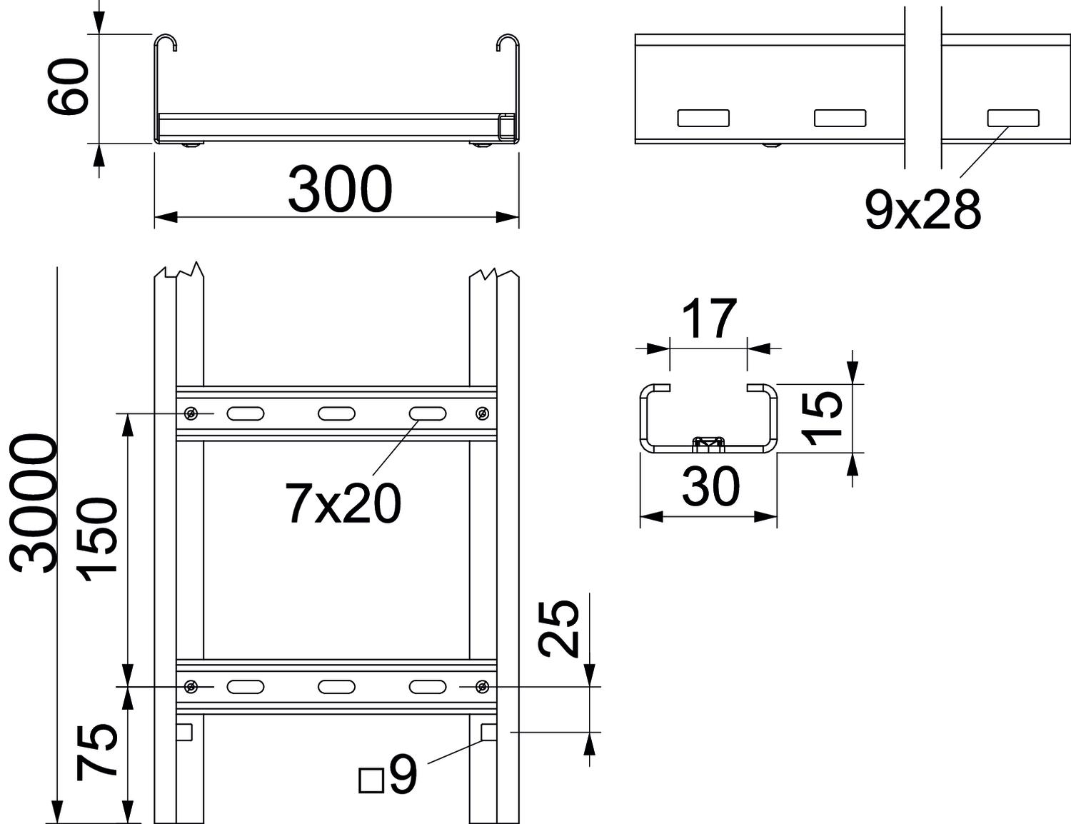 Amprenta CO2 (GWP) de la leagăn la poartă 5,3296 kg CO2e / 1 Metru Culoare zinc Dimensiune 60x300x3000 Dimensiunea fantei traversei 17,00 Dimensiune B 300 mm Distanţa dintre traverse 150 mm Execuţie lonjeron lateral Profil (deschis) Fixare traversă nituită înfundată grosimea lonjeronului 1,5 mm Înălţime 60 mm Lăţimea 300 mm Lungime 3000 mm Material Oţel Menținerea în funcțiune da Oțel inoxidabil, băițuit nu Perforaţie laterală da Protecţie contra incendiului Menținere în funcțiune construcție portantă conform standardului Secţiune utilă 14800 mm² Suprafaţă = zincat prin imersie Variantă pentru încărcări mari nu Variantă traverse Profil perforat  - Toate tipurile