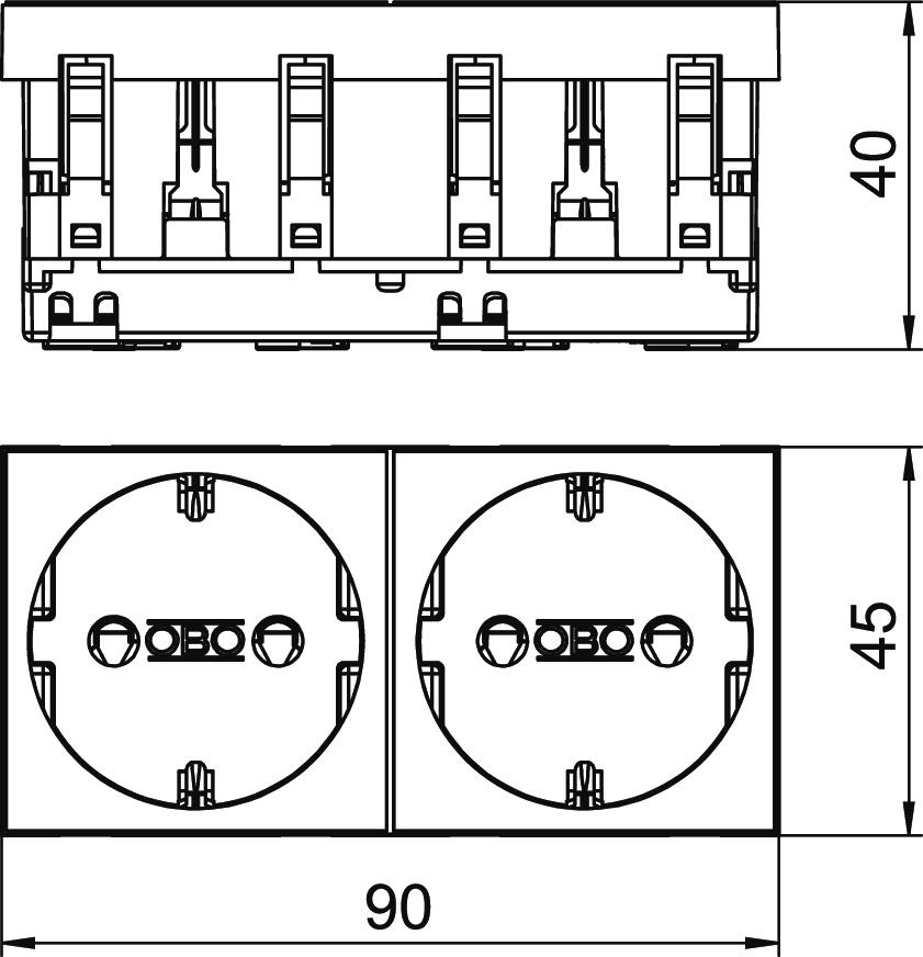 Descrierea produsuluiPriză cu contact de protecţie dublă 0°, cu protecţie ridicată la atingere, cu cleme cu înfigere, 2 poli, 16 A, 250 V~, cu cleme de legătură conform IEC 60884-1.