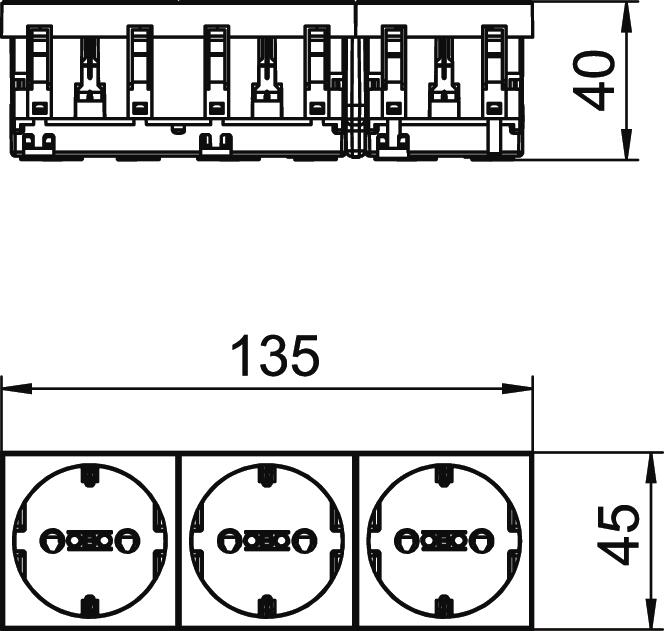 Descrierea produsuluiPriză cu contact de protecţie triplă 0°, cu protecţie ridicată la atingere, cu cleme cu înfigere, 2 poli, 16 A, 250 V~, cu cleme de legătură conform IEC 60884-1.