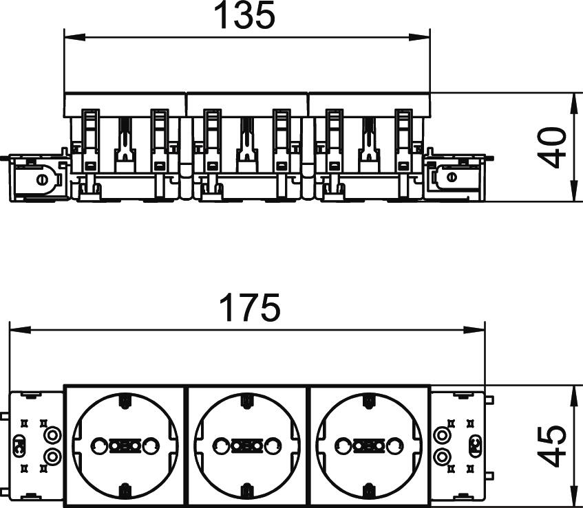Descrierea produsuluiPriză cu contact de protecţie, cu conexiune laterală triplă 0°, cu protecţie ridicată la atingere, cu cleme cu înfigere, 2 poli, 16 A, 250 V~, cu cleme de legătură conform IEC 60884-1, recomandată pentru montajul în sisteme de canale pentru montaj aparate Rapid 45.