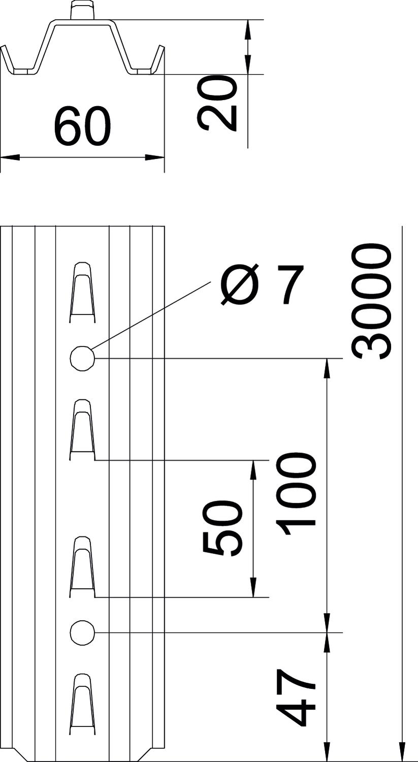 Descrierea produsuluiProfil TP cu cârlig de strângere pentru montajul fără şuruburi al jgheaburilor din sârmă.