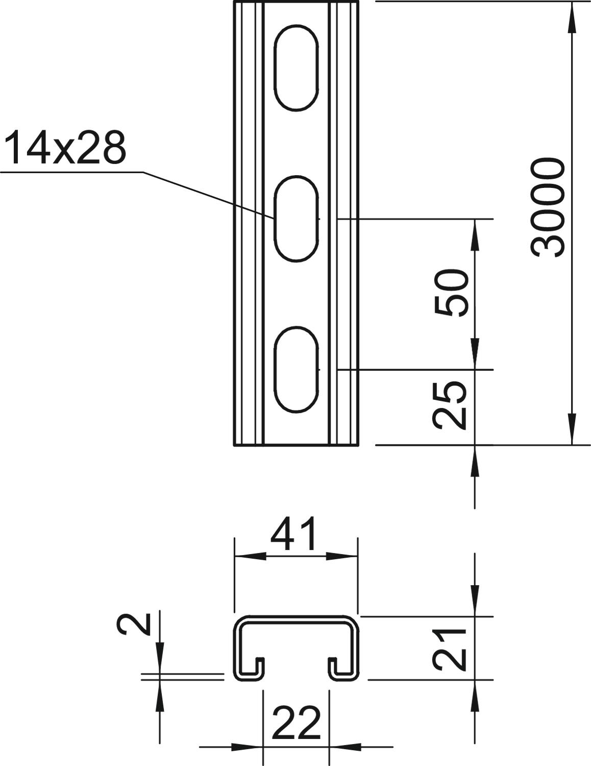 Amprenta CO2 (GWP) de la leagăn la poartă 7,323 kg CO2e / 1 Metru Cu perforaţie da Cu zimţare da Dimensiune 3000x41x21 Dimensiune decupare 22 mm Dimensiune L 3000 mm Distanţa dintre găuri în mijloc 50 mm Formă profil Profil C Grosime material 2 mm Înălţime 21 mm Lăţimea 41 mm Lungime 3000 mm Mărimea găurii 14x28 mm Material Oţel superior, inoxidabil 1.4571 Menținerea în funcțiune da Secţionabil nu Suprafaţă luminos, reprelucrat Tip perforație Parte posterioară perforată Valoare statică A 1,65 cm² Valoare statică ly 0,95 cm⁴ Valoare statică lz 4,51 cm⁴ Valoare statică Wy 0,89 cm³ Valoare statică Wz 2,2 cm³ Variantă Profil simplu  - Toate tipurile