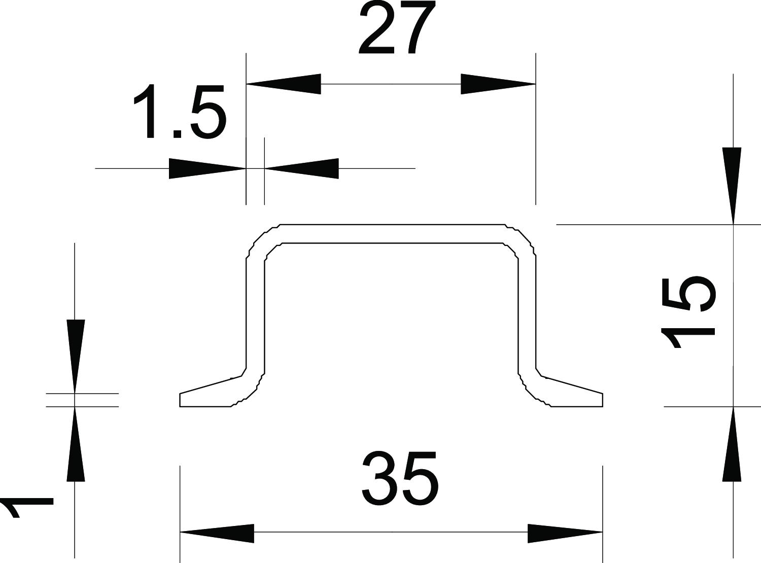 Descrierea produsuluiŞină profilată omega 35 x 15 mm similar DIN EN 60715 (anterior DIN EN 50022), totuşi cu o grosime a materialului de 1,5 mm.