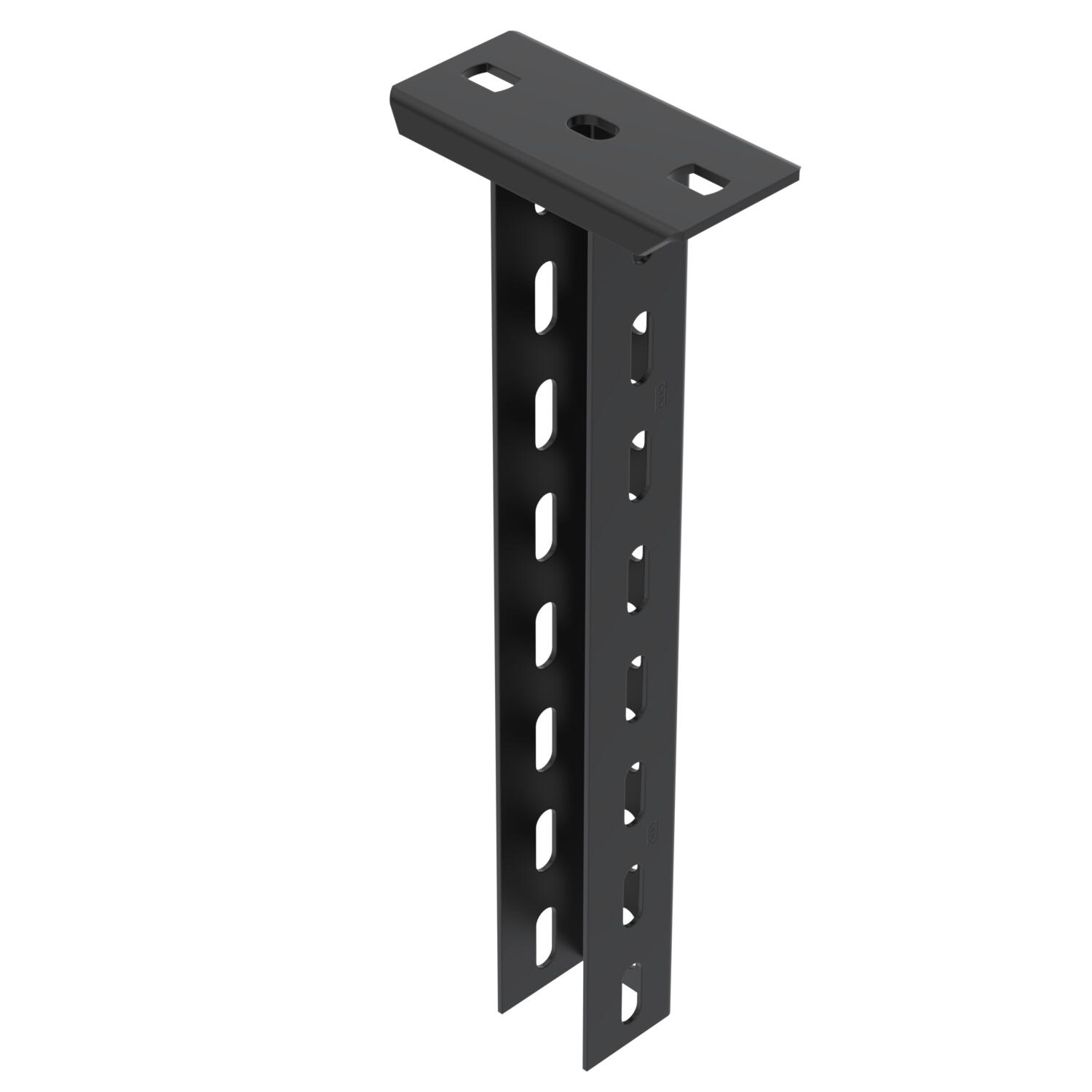 Descrierea produsuluiSuspended support made from U profile with welded-on head plate, perforated to 3 sides, for the creation of support constructions for cable trays. Suitable for mounting on horizontal concrete ceilings and steel supports. Wall and support bracket can be mounted on both sides of the U suspended support. Spacer DSK to insert, from bracket width 400 mm or when mounting the bracket on the end of the suspended support. With black powder coating.