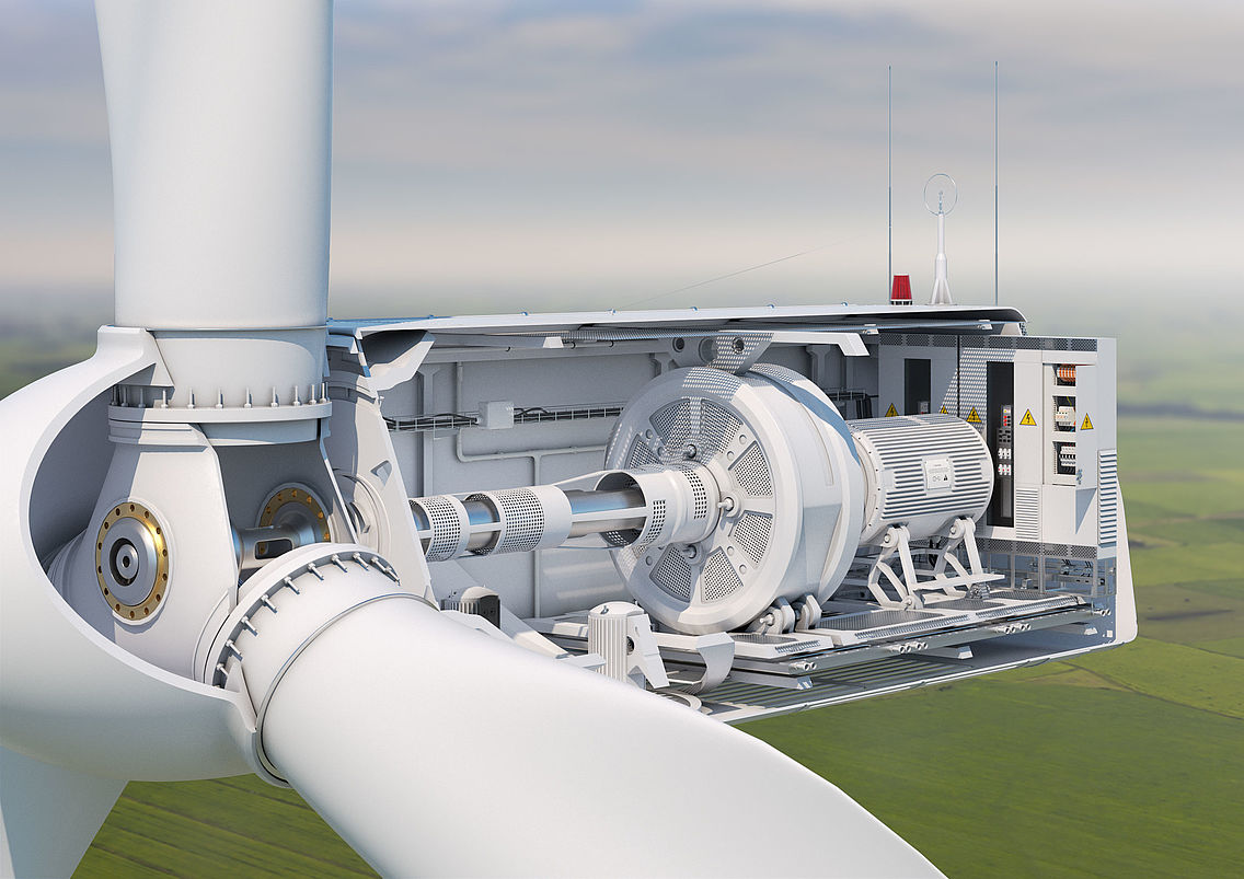 Nacela este așezată pe pilonul turbinei eoliene. Cele două părți sunt conectate între ele prin intermediul unei articulații rotative. În partea frontală a nacelei se află rotorul, format din butuc și palele individuale ale rotorului. Nacela transferă sarcinile rezultate din rotor și din toate componentele instalate către fundație prin intermediul pilonului.